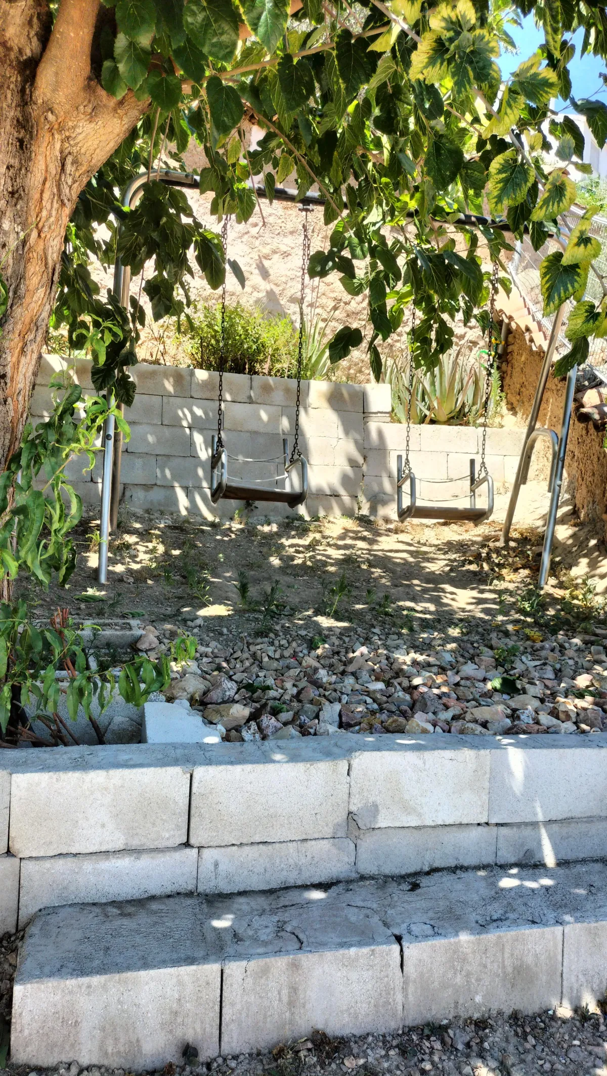 Cuenta con un banco y un columpio artesanales, creados por mi padre Juan Muñoz en los años 80, en los que disfruté durante mi infancia.